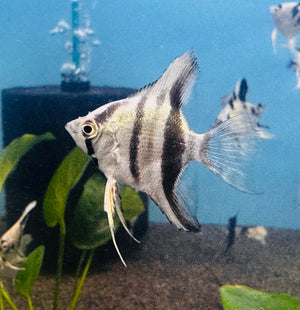 Angelfish are omnivorous and will feed at the surface or mid-water as well as forage along the bottom in search of worms and small crustaceans. These fish prefer a meat-based diet so choose a good quality food specially formulated cichlids such as flakes or pellets, and supplement the diet with live foods including bloodworms, brine shrimp, white worms, crustaceans and small insects. Be sure to also include some plant matter such as algae wafers or fresh vegetables cut into small pieces.