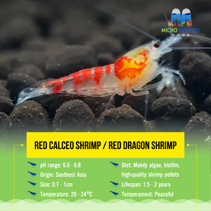 Availability: The Red Calceo shrimp are not as widely available as some other shrimp species and may be more expensive due to their rarity and popularity. They were breed at Micro Aquatic Shop