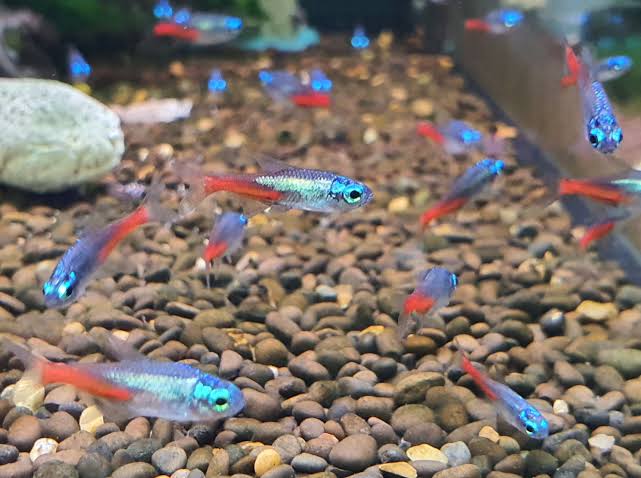 ✅ Though they can be slightly more difficult to keep when compared to neon's due to their sensitivity to water parameters, the cardinal tetra pulls through with its full body colors. Featuring a much more metallic blue and full-body red stripe the cardinal tetra offers the complete contrast.
