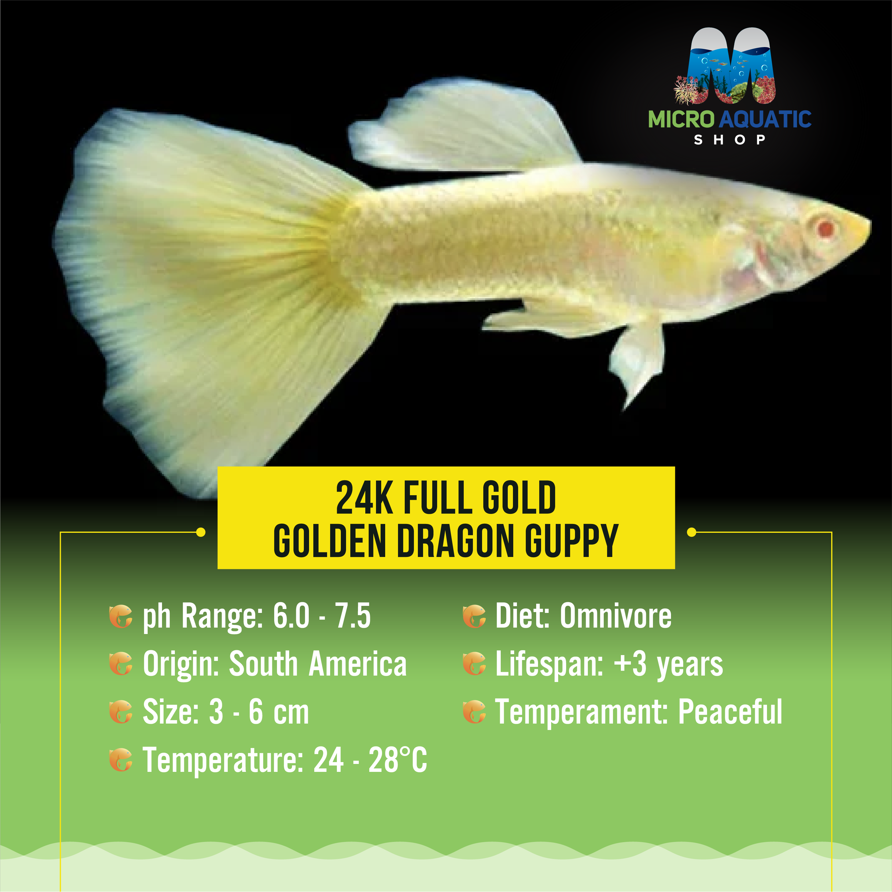 We promise to offer not just exotic guppies but also the help you need to enjoy raising them. Get your Gold Dragon uppies from Micro Aquatic Shop and watch your aquarium come to life. Let's cherish the beauty of the underwater world together.