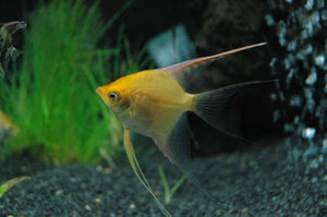 ✅ The Gold Angelfish is a very popular tropical fish because of its unique shape and because of their interesting personalities. Freshwater angelfish are aggressive eaters and will go to the top of the tank when they see you approach.
