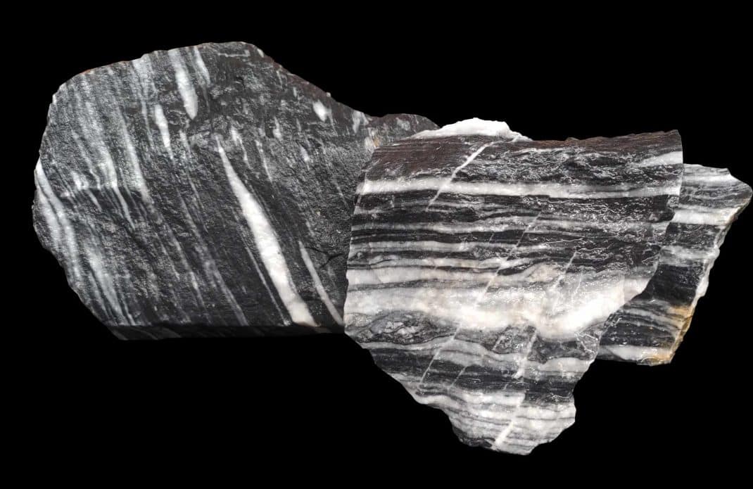 B&W Aurum Stone: This particular hardscape material is in the black & white (B&W) variety similar to that of Foggy Mountain stone, B&W thin line stone and Snowflake stone. Aurum stone is distinguished by its clean and clear llines of black and white as well as a smoother, flatter finish than any other stone in the B&W variety. The smooth surface gives Aurum stone a gloss that other stones lack and is ideal for an aquascaper looking to highlight the colours and contrast of this stone rather than a rough texture found in many other stones.