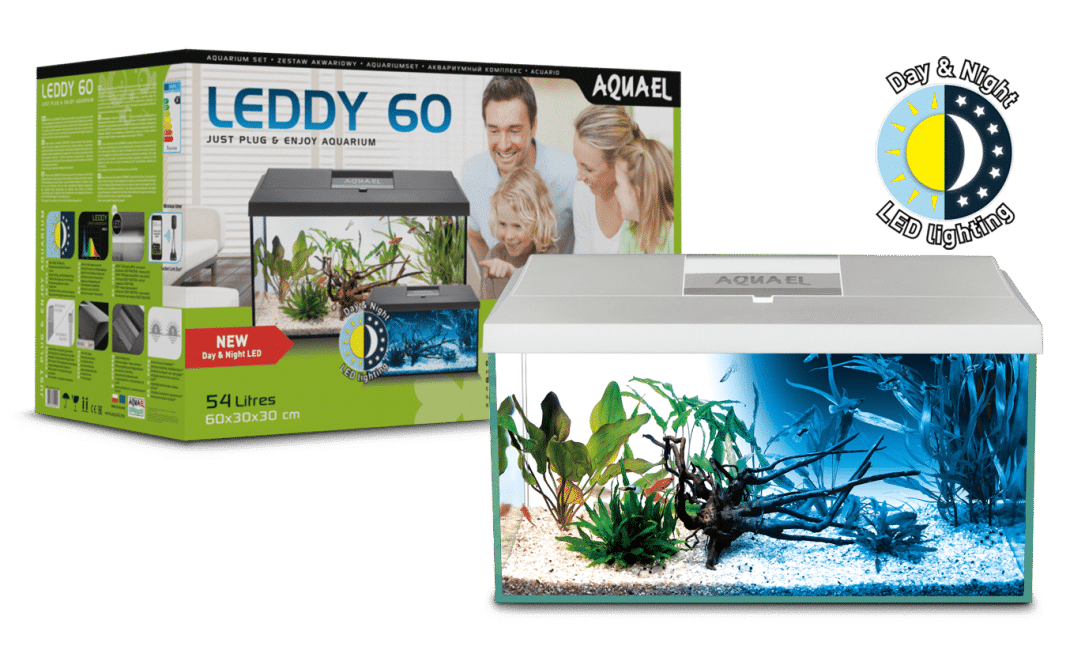Each Aquael Leddy Day & Night Aquarium Set typically includes:- Aquarium Tank: Made of durable glass with polished edges.