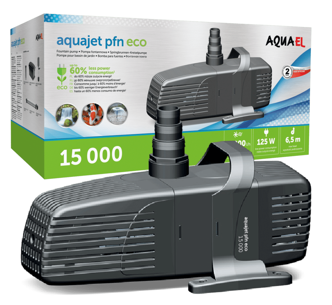 Cost-Effective Operation: The combination of low power consumption and high flow rate ensures that the Aquael PFN Eco pumps are cheap to run, offering substantial savings over time. Even the largest model in the range, the Aquael PFN Eco 25,000, with its massive 25,000 liters per hour flow rate, consumes just 180 watts of power, making it an economical choice for maintaining large ponds or water features.