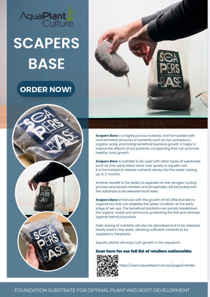 Scapers Base is a highly porous material, and formulated with concentrated amounts of nutrients such as iron, potassium, organic acids, promoting beneficial bacteria growth. It helps to reduce the effects of soil particles compacting that can promote healthy roots growth.