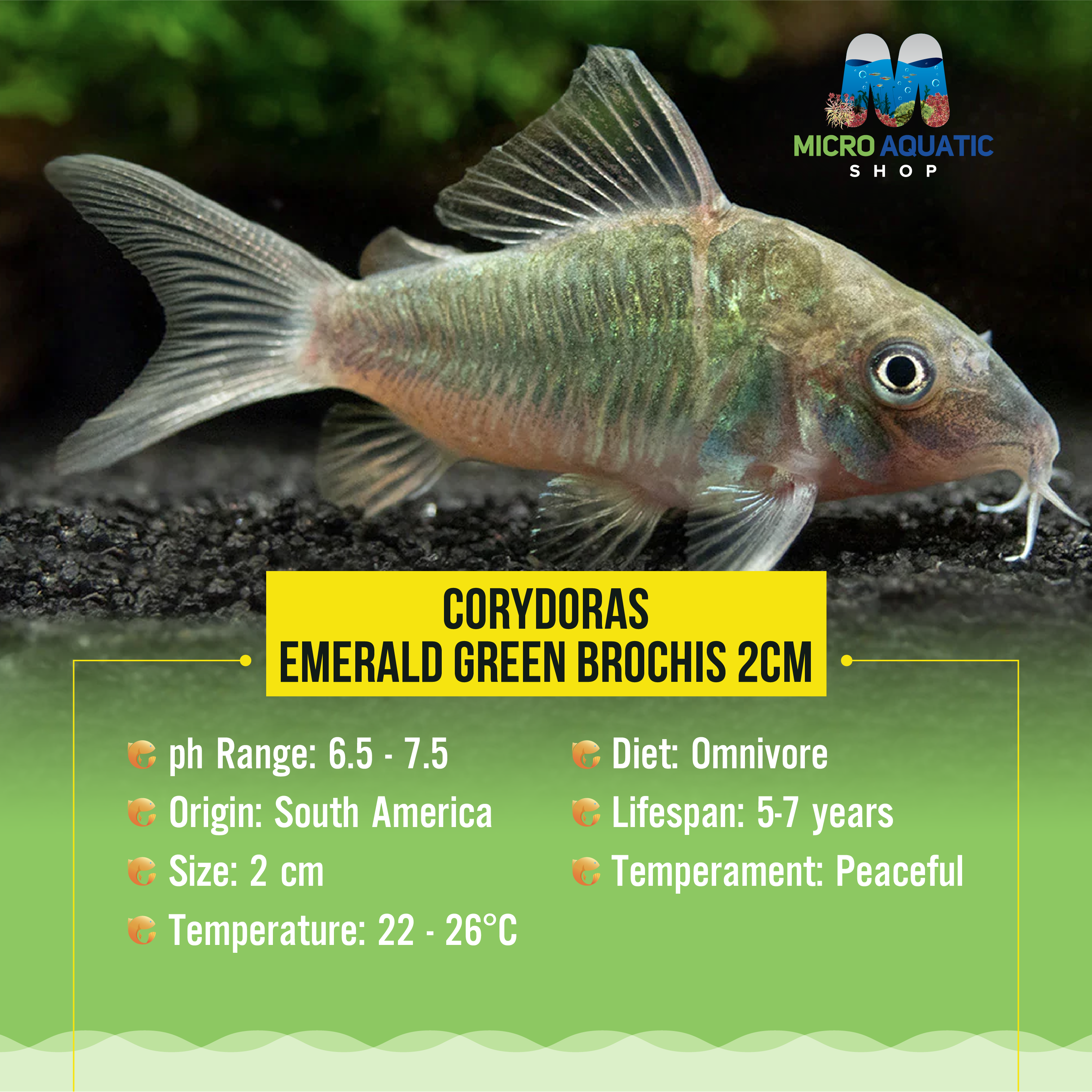 Corydoras- Emerald Green Brochis 3cm