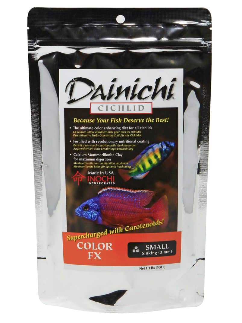 DAINICHI COLOR FX represents the most progressive advances in cichlid nutrition we have ever offered to cichlid hobbyists. Utilizing Dainichi’s advanced encapsulation technology to the fullest, this outstanding formula is packed with features found in no other food brand in the industry. For starters, there are an unprecedented seven applications of highly nutritious as well as potent color intensifiers like shrimp, Antarctic krill, Cyclop-eeze®, NatuRose® (Haematococcus algae) and raw, un-cooked spirulina.