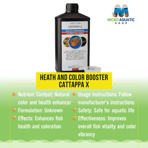 Easy-Life Catappa-X is a liquid catappa leaves concentrate for fish and shrimps in fresh water aquaria. Leaves from the Catappa tree are known for their healing effect on fish and shrimp: they lower germ density (less pathogens), prevent fungal infections, improve growth, prevent problems with the slime coat and situmlate the vitality and colouring of shrimp and fish. The disadvantage is often that these leaves turn the water brown and bring additional organic impurities.
