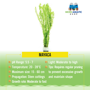 Mayaca is a fine-leafed stem plant that has a large native range from throughout the Americas and West Indies. It is a good substitute for people struggling to grow ambulia, as it has similar growth habits to elodea, although it does require a bit more light.0