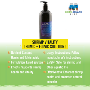 Shrimp Vitality is an advanced concentrated mix of Humic and Fulvic Acid that helps to create ideal conditions in shrimp tanks.