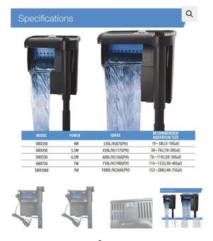 SMX350 (350L/H ) up to 80L Tank, SMX550 (550L/H) <135L Tank, SMX750 (750L/H) <180L Tank  |