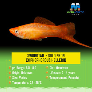 Setting up the right tank, keeping the water just right, or learning about breeding, we've got you covered. Our tips will help your Gold Neon Swordtail do well in its new home. Knowing how to handle health problems is key to keeping these freshwater aquarium fish happy and healthy for a long time. At Micro Aquatic Shop, we love helping you create a vibrant underwater world with the gold neon swordtail. Our team is ready to give advice, offer the best supplies, and support you every step of the way. Let's start an exciting journey together and welcome these lively Xiphophorus Hellerii into your home.